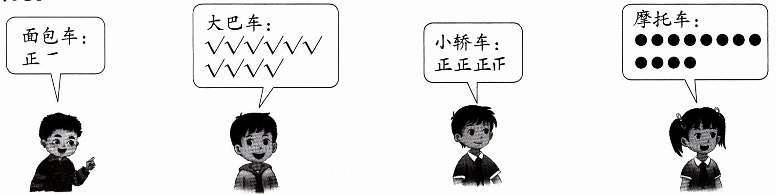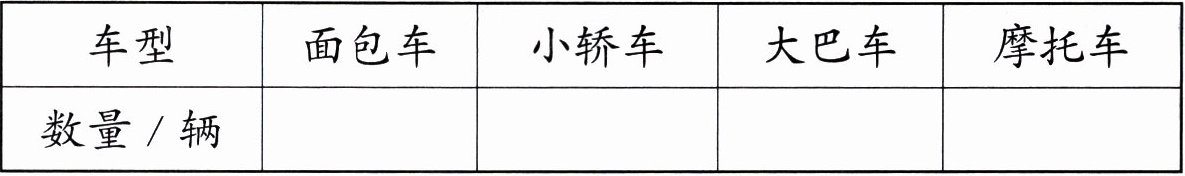 3. 下面是创新组在某路口统计10分钟内所通过的各种交通工具的数量情况。