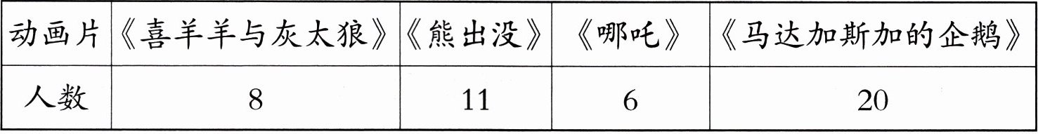 2. 下面调查的是三(1)班同学最喜欢看的动画片(每人只选一种),请你根据统计表中的数据回答下面的问题。