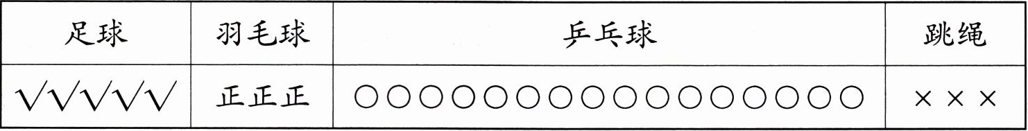 1. 小兰调查了三(1)班同学最喜欢的运动项目(每人只选一种),下面是她的调查记录: