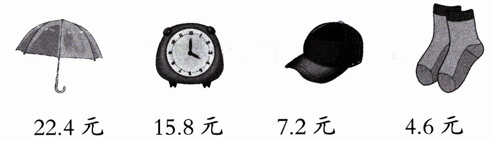 (1)一个闹钟比一把雨伞便宜6.6元。