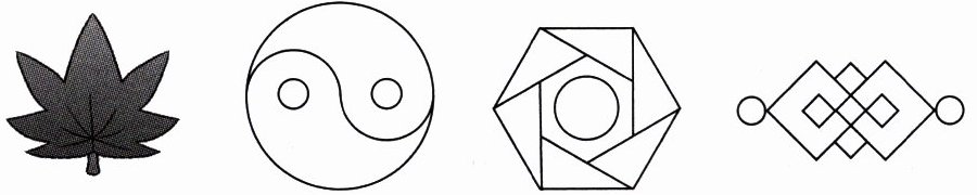 4. 下列图形都是轴对称图形的一半,请把完整图案的名称写在横线上。