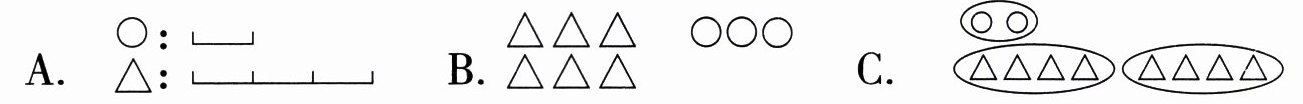 4. 下列选项中,表示△个数是○个数的 2 倍的是(