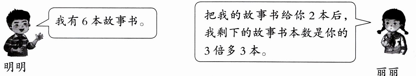 丽丽剩下的故事书是明明的3倍多3本,即: