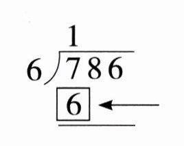 9. 学校图书室买了$786$本故事书,平均分给$6$个班,要求每个班分得多少本故事书,下图是小红列出的竖式,箭头指的$6$表示(