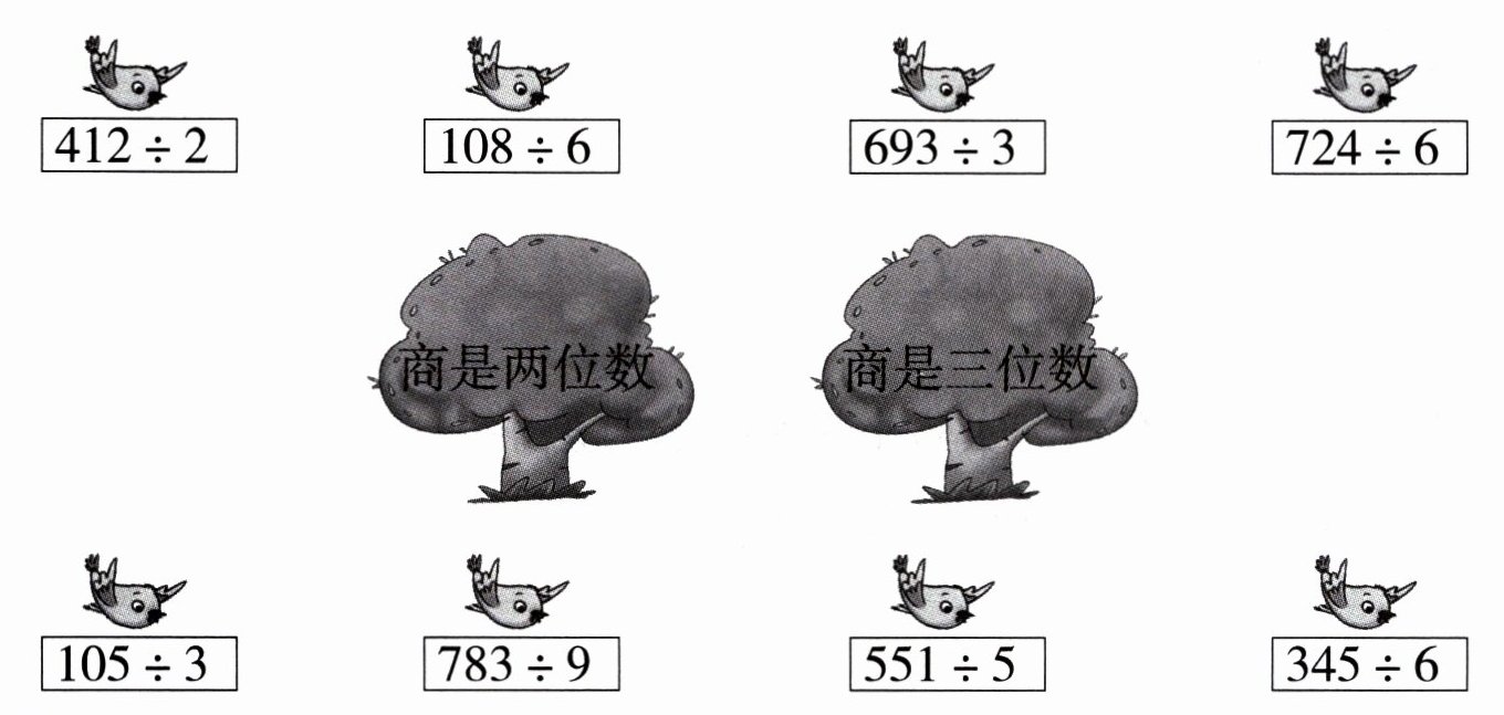 商是三位数:$412÷2$、$693÷3$、$724÷6$、$551÷5$。