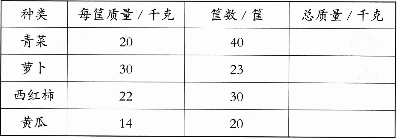8. 学校食堂采购菜单如下。算一算,填一填。