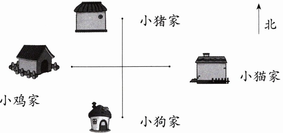 )面。(2) 小鸡家在小狗家的(