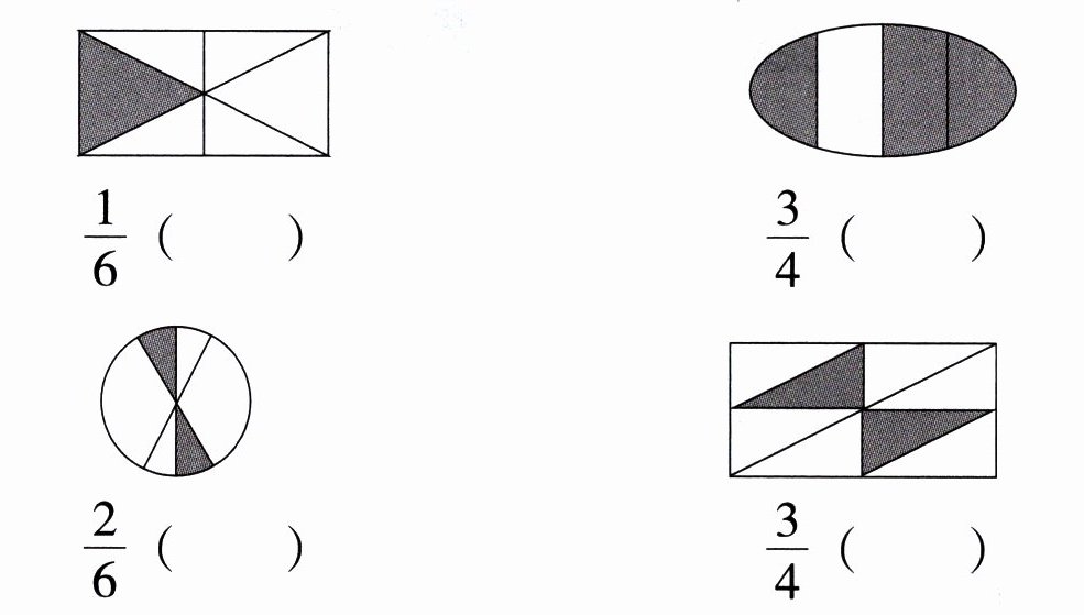4. 火眼金睛辨对错。阴影部分用下列分数表示对吗? (对的打 “√”,错的打 “×”。)