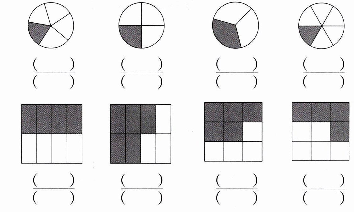 3. 写出阴影部分所表示的分数。