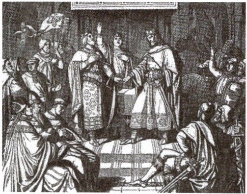 3. 800年,教皇把一顶皇冠戴在法兰克王国国王查理的头上,宣布他为“罗马人的皇帝”,查理因此被称为“查理大帝”或“查理曼”。这意味着查理曼成为古罗马帝国的继承人和基督教世界的保护者。从此便奠定了教廷与王廷对西欧进行教俗双重统治的体制。这表明(