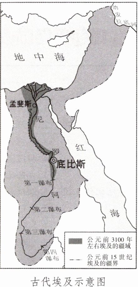 (1)用颜色笔在图中描出公元前15世纪古埃及的疆界。