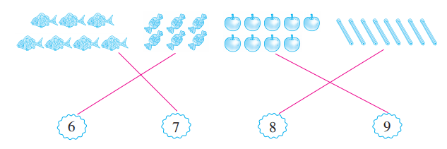 1. 数一数,连一连。