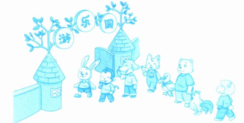 (2)狗前面有()只动物,鸭后面有()只动物,一共有()只动物。