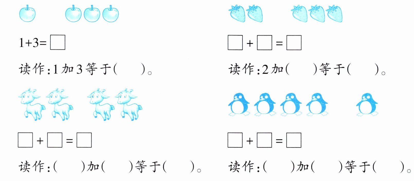 1. 数一数,算一算,读一读。