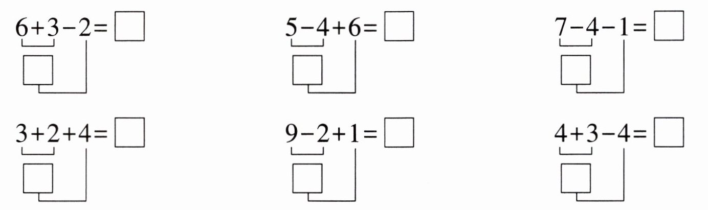 $6+□=7$ $8+□=9$ $5+□=8$ $□-5=2$