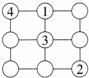 8. 在○里填合适的数,使每条线上的3个数相加的和都是8。