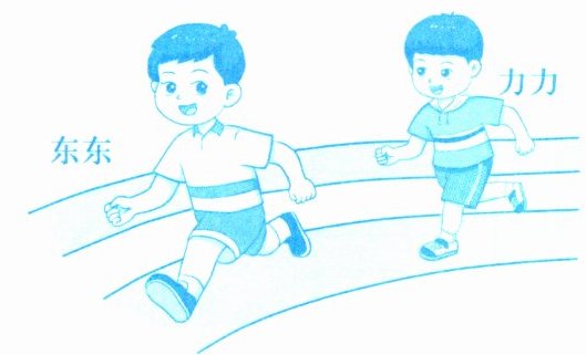 (3)在下图的短跑比赛中,东东跑在力力的()面,力力在东东的()面。
