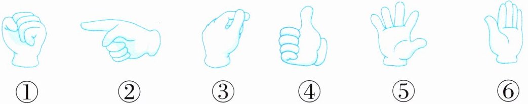 5. 仔细观察,下图中( )是左手,( )是右手(填序号)。
