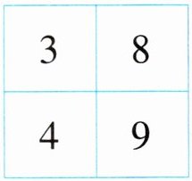 9在8的()面;3在()的上面;()在4的右面;8的左面是()。