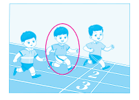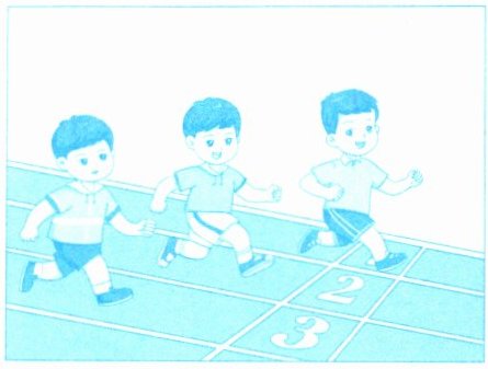 3. 小明、小强、小华三人赛跑,小明跑在小华的后面、小强的前面。请在图中圈出小明的位置。