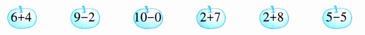 2. 把得数是10的苹果涂上红色。