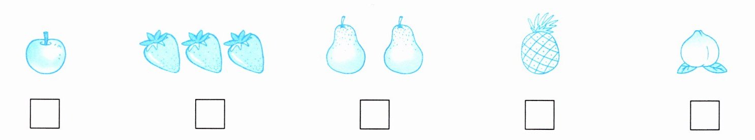 3. 哪种水果的数量是1?在它下面的$□$里画“√”。