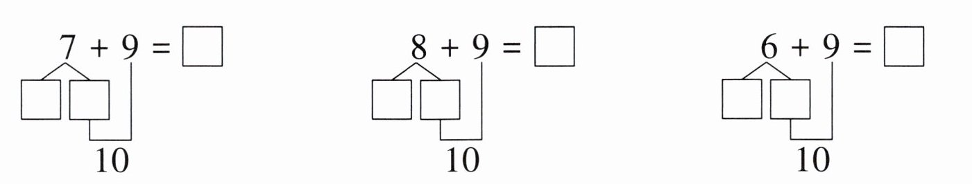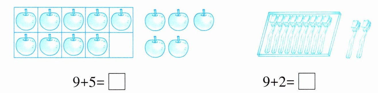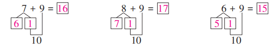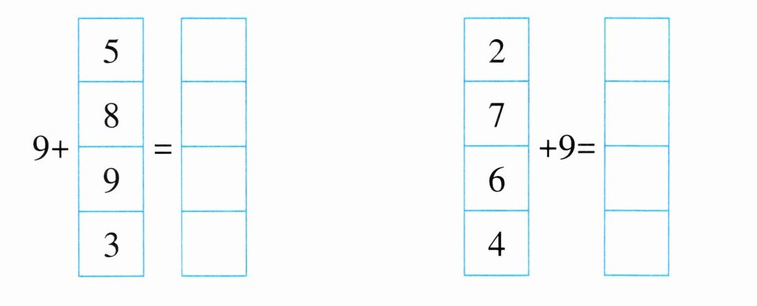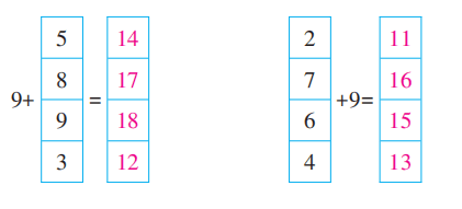 $9+4=$ $9+7=$ $9+3=$ $8+9=$