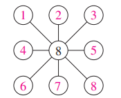 9. 将1,2,3,4,5,6,7,8分别填入$◯$中,使每条线上三个数的和是17。