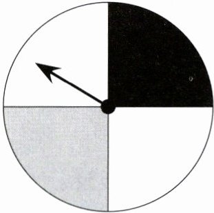 将圆盘平均分成4份,分别涂上黑色、灰色,剩下的是白色(如图所示)。小红任意转动转盘,使转盘至少转动一周以上。