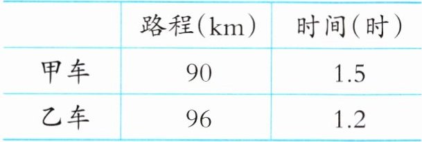 ②甲车与乙车所用时间的最简整数比是(5:4)。