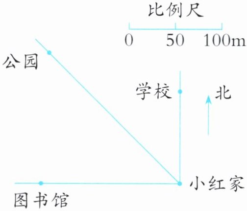 4.小红家到学校、图书馆、公园的实际距离各是多少米?