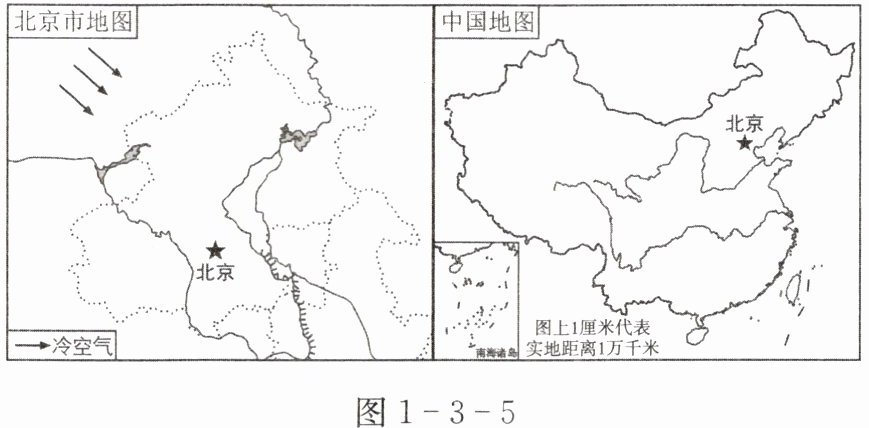 (“大”或“小”)。(3)读北京市地图,这股冷空气属于
