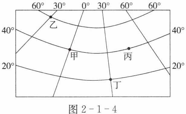 (3)甲、乙、丙、丁四地中,既位于东半球又位于南半球的地点是