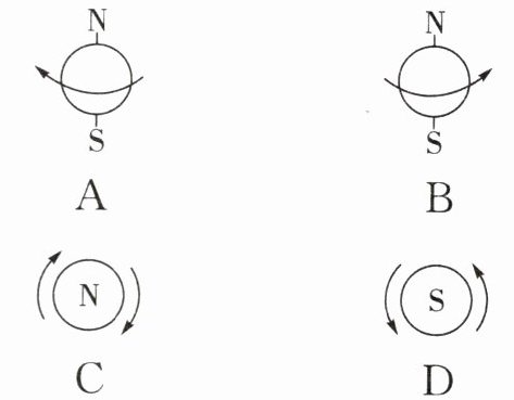 1. 下列四幅示意图,能够正确表示地球自转方向的是 (