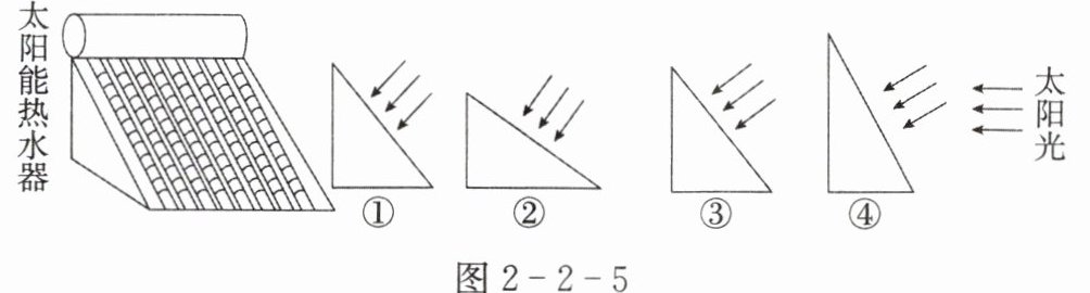 (填方向)移动。(4)太阳能热水器若想达到最佳集热效果,太阳能集热管面的倾斜角度应随当地的正午太阳高度大小进行调整。图2-2-5示意重庆四季的最佳安装效果,其中表示夏季的是______。