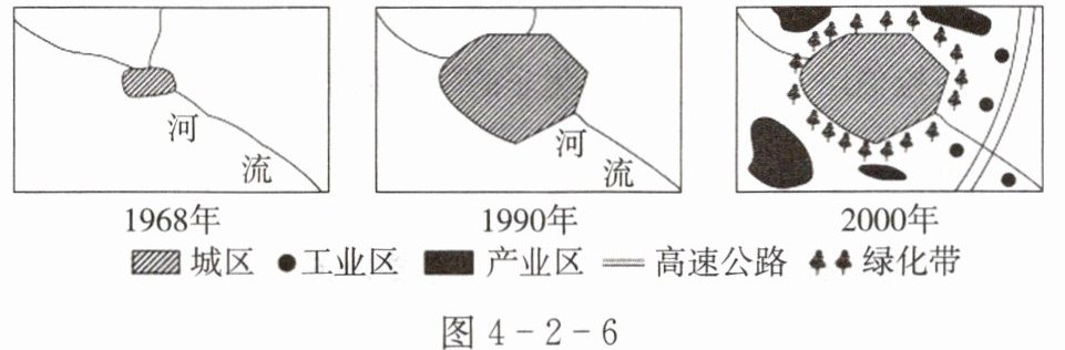 6. 读图4-2-5某地区简图与图4-2-6 B地发展演变图,完成下列各题。