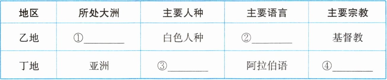 (2)①欧洲;②英语;③白色人种;④伊斯兰教