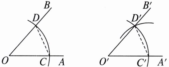 (2)作一条射线O'A',以点O'为圆心,____为半径作弧,交O'A'于点C';