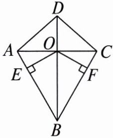 证明 在$\triangle ABD$和$\triangle CBD$中,$\left\{\begin{array}{l} AB=CB,\\ AD=CD,\\ BD=BD,\end{array}\right. $$\therefore \triangle ABD\cong \triangle CBD(SSS),\therefore \angle ABD=\angle CBD,$$\therefore BD$平分$\angle ABC.$$\because OE\perp AB,OF\perp CB,\therefore OE=OF.$