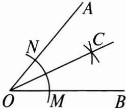 (1)以点O为圆心,适当长为半径作弧,交OA于点M,交OB于点N。