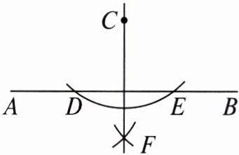 作法:如图.(1)以______为圆心,适当长为半径作弧,交直线 $ AB $ 于点 $ D $ 和点 $ E $;