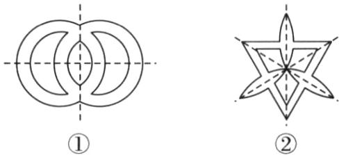 解①②④是轴对称图形,对称轴如图.