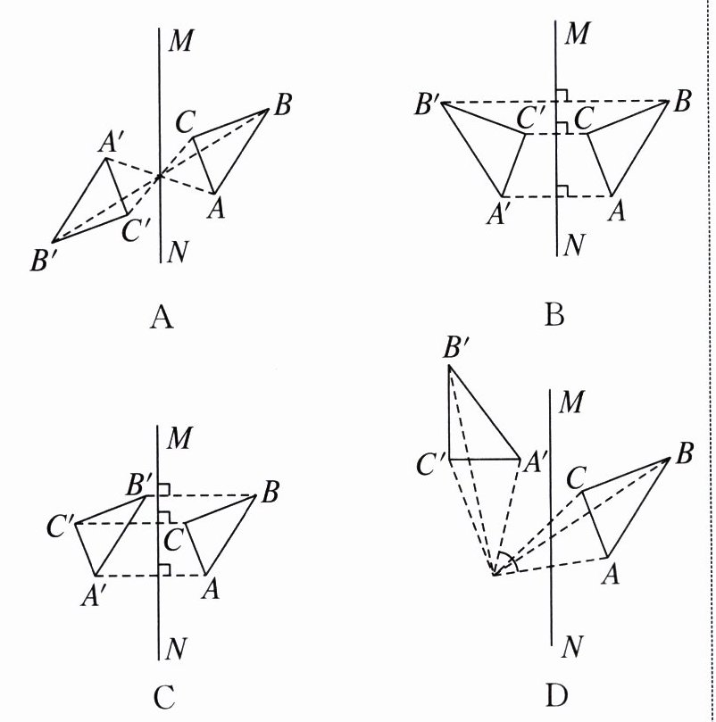 1. 在下列图形中,△A′B′C′与△ABC关于直线MN成轴对称的是( )