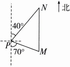 2. 如图,一艘海轮位于灯塔P的南偏东70°方向的M处,它以40海里每小时的速度向正北方向航行,两个小时后到达位于灯塔P的北偏东40°的N处,则N处与灯塔P的距离为____海里.