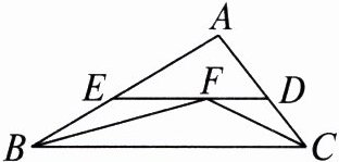 7. 如图,在△ABC中,∠ABC和∠ACB的平分线交于点F,过点F作DE//BC,交AB于点E,交AC于点D.
