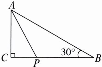 2. 如图,在$\triangle ABC$中,$\angle C = 90^{\circ}$,$AC = 3$,$\angle B = 30^{\circ}$,$P是BC$边上的动点,则$AP$的长可能是( )