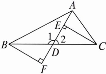 3. 如图,已知$AD是\triangle ABC$的中线,$\angle 1 = 2\angle 2$,$CE \perp AD于点E$,$BF \perp AD$,交$AD的延长线于点F$.若$EF = 6$,则$BC = $______.