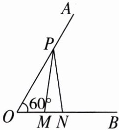 7. 如图,已知$\angle O = 60^{\circ}$,点$P在边OA$上,$OP = 8$,点$M$,$N在边OB$上,$PM = PN$,若$MN = 2$,求$ON$的长.