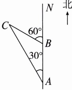 6. 上午8时,一条船从海岛$A$出发,以15海里/时的速度向正北航行,上午10时到达海岛$B$处,从$A$,$B望灯塔C$,测得$\angle NAC = 30^{\circ}$,$\angle NBC = 60^{\circ}$.