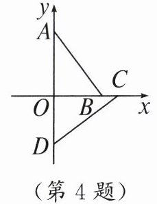 4. 如图,在平面直角坐标系中,已知$A(0,4)$,$B(3,0)$,点$D在y$轴的负半轴上,若$\triangle ABO\cong \triangle CDO$,则点$D$的坐标为( )